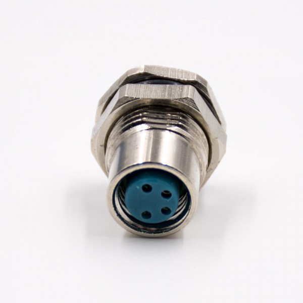 M8连接器4芯母头直式前锁板板端插座接线焊接式传感器