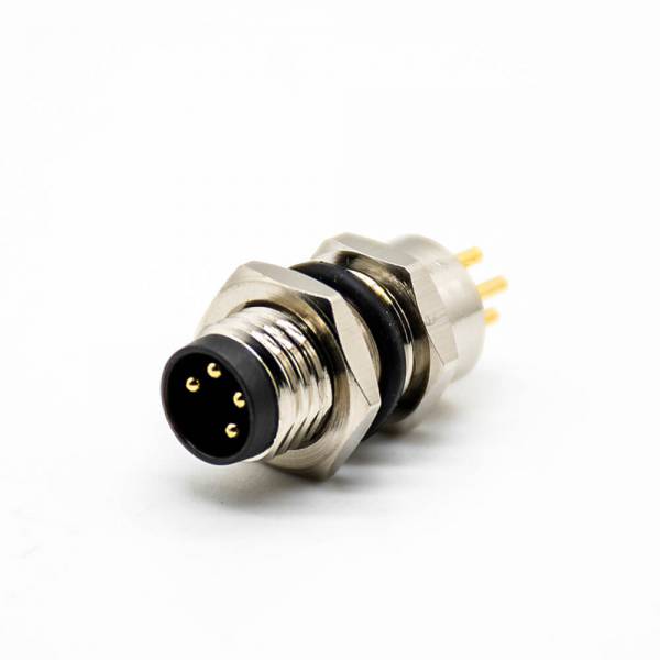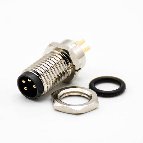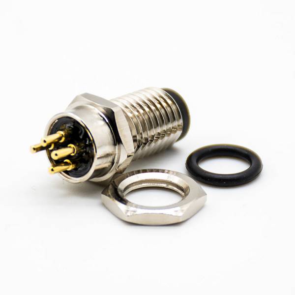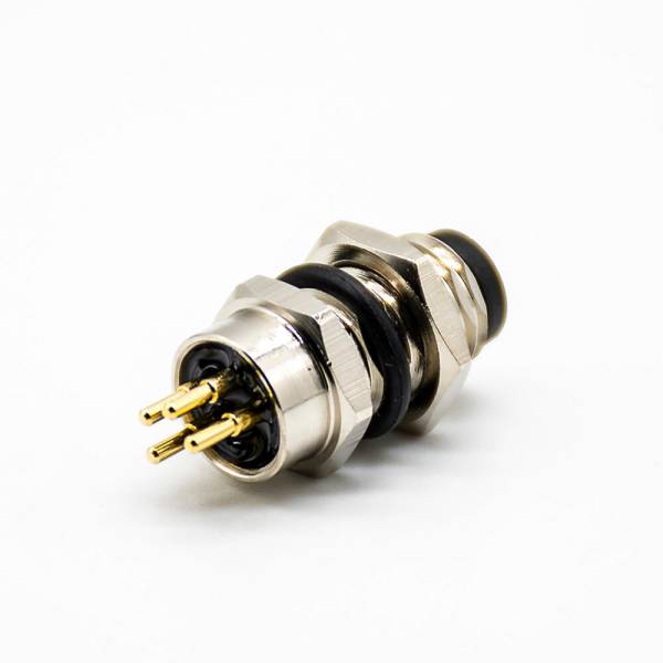 料号:EB-400-1258 标签:M8板端插座,180°,4芯,公头,接PCB板,焊接式,前锁板,防水