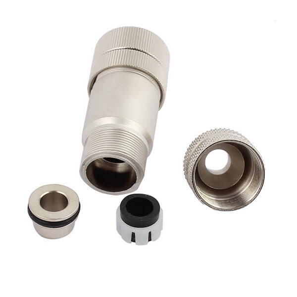 标签:M12现场组装插头, A编码, 8芯, 母, 直式, 接线, 螺丝锁线, 带屏蔽, 金属外壳