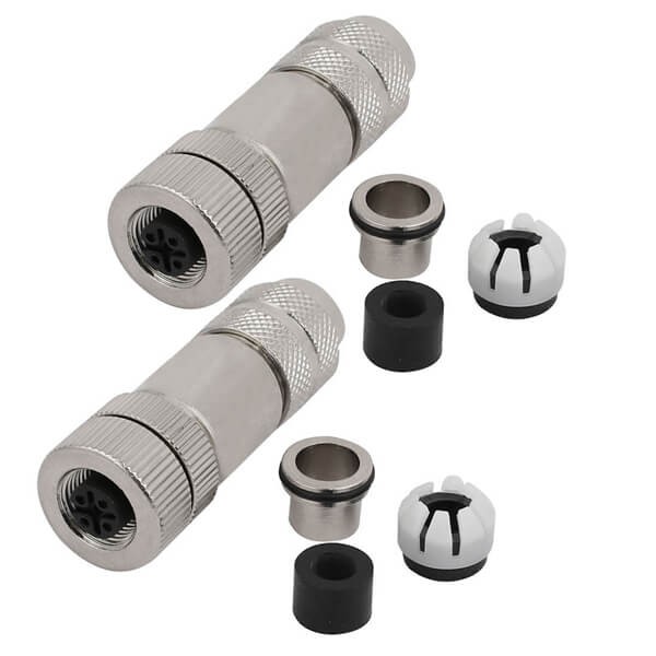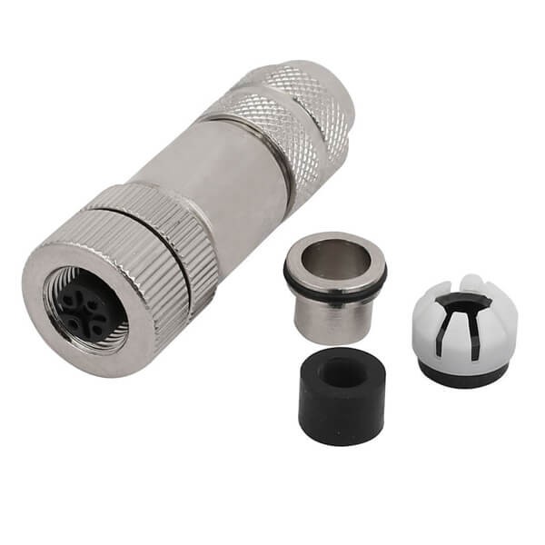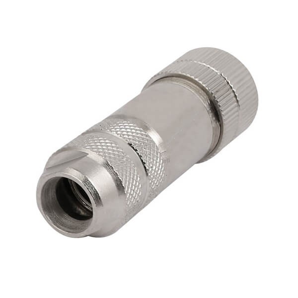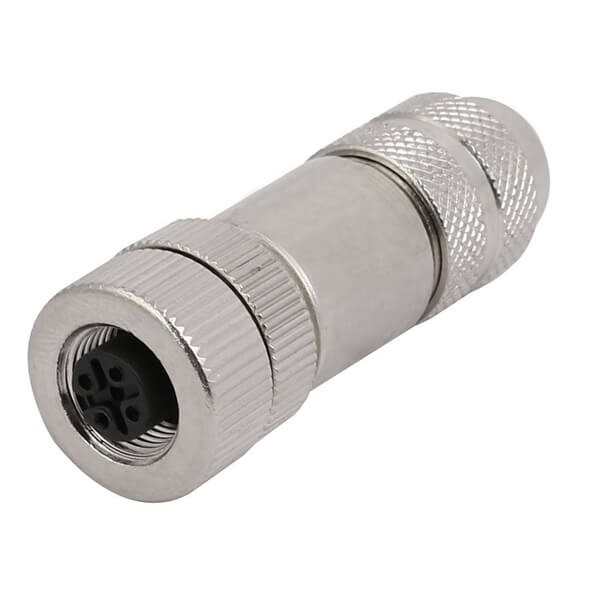 料号:EB-400-2193 标签:M12现场组装插头, A编码, 4芯, 母, 直式, 接线, 螺丝锁线, 带屏蔽, 金属外壳