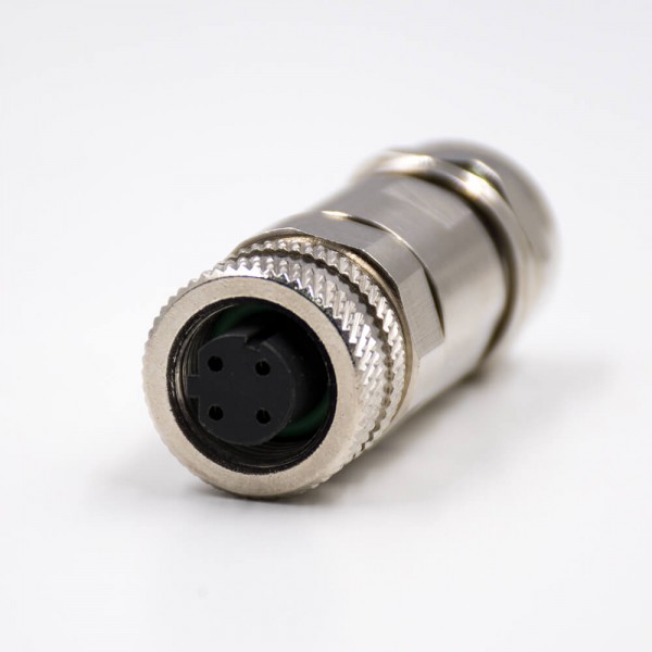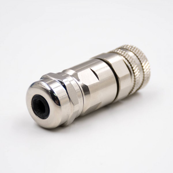 料号:EB-400-2291 标签:M12现场组装插头, D编码, 4芯, 母, 直式, 接线, 螺丝锁线, 带屏蔽, 金属外壳