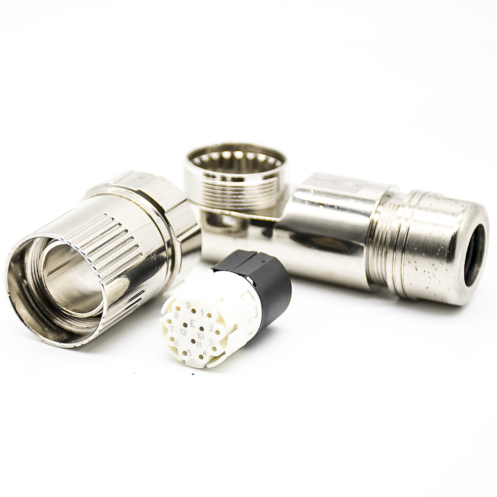 料号:EB-400-4096 标签:M23现场组装插头,12芯,母,弯式,接线,螺丝锁线,带屏蔽,金属外壳,M23*1.0