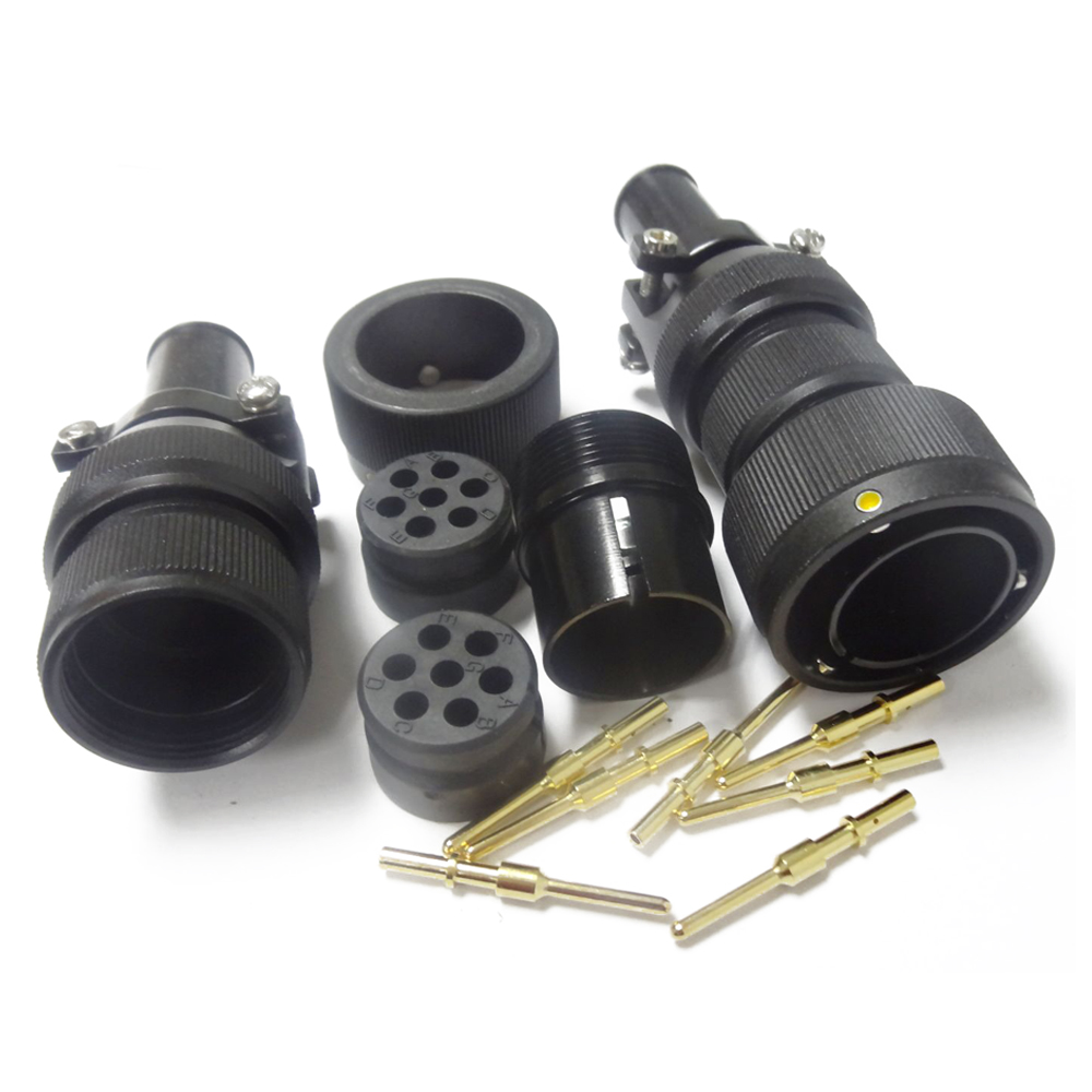 铁路专用圆形电连接器JL黑色阳极化美标7芯卡扣连接公插头直式牵引连接器