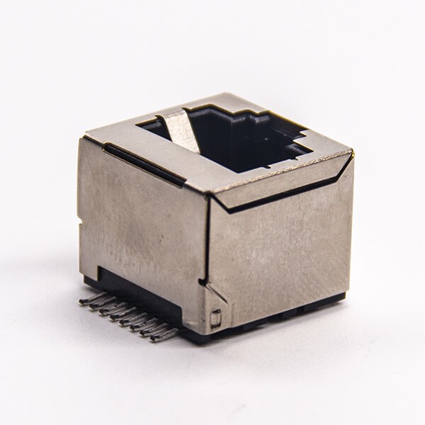 rj45屏蔽插座直式smt贴板式接PCB板不带灯