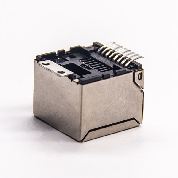 标签:RJ45插座,8P8C,单端口,1*1,直式180°,触头镀金,贴板,PCB板安装,带屏蔽,不带灯,不带滤波