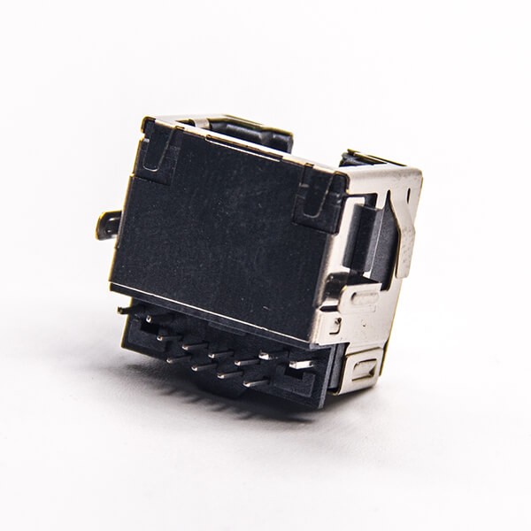 屏蔽rj45母座弯式沉板插板连接器带灯带弹片