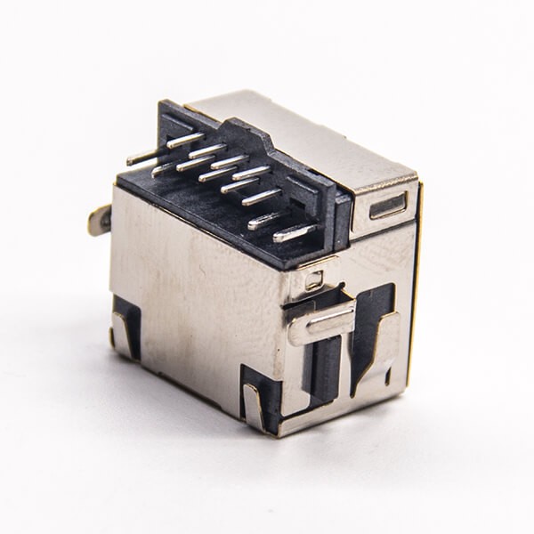 标签:RJ45插座,8P8C,单端口,1*1,弯式90°,触头镀金,沉板,插板,PCB板安装,带屏蔽,带灯,不带滤波