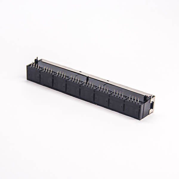 8口rj45插座全屏蔽以太网连接器弯式插板1*8