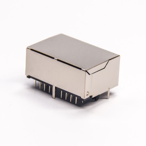 rj45网络双通弯式90度带屏蔽座子穿孔式接PCB板