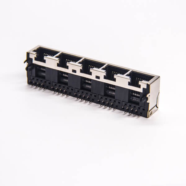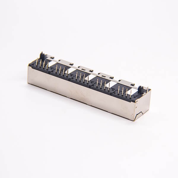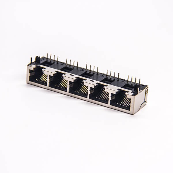 标签:RJ45插座,8P8C,5端口,1*5,弯式90°,触头镀金,插孔,PCB板安装,带屏蔽,不带灯,不带滤波