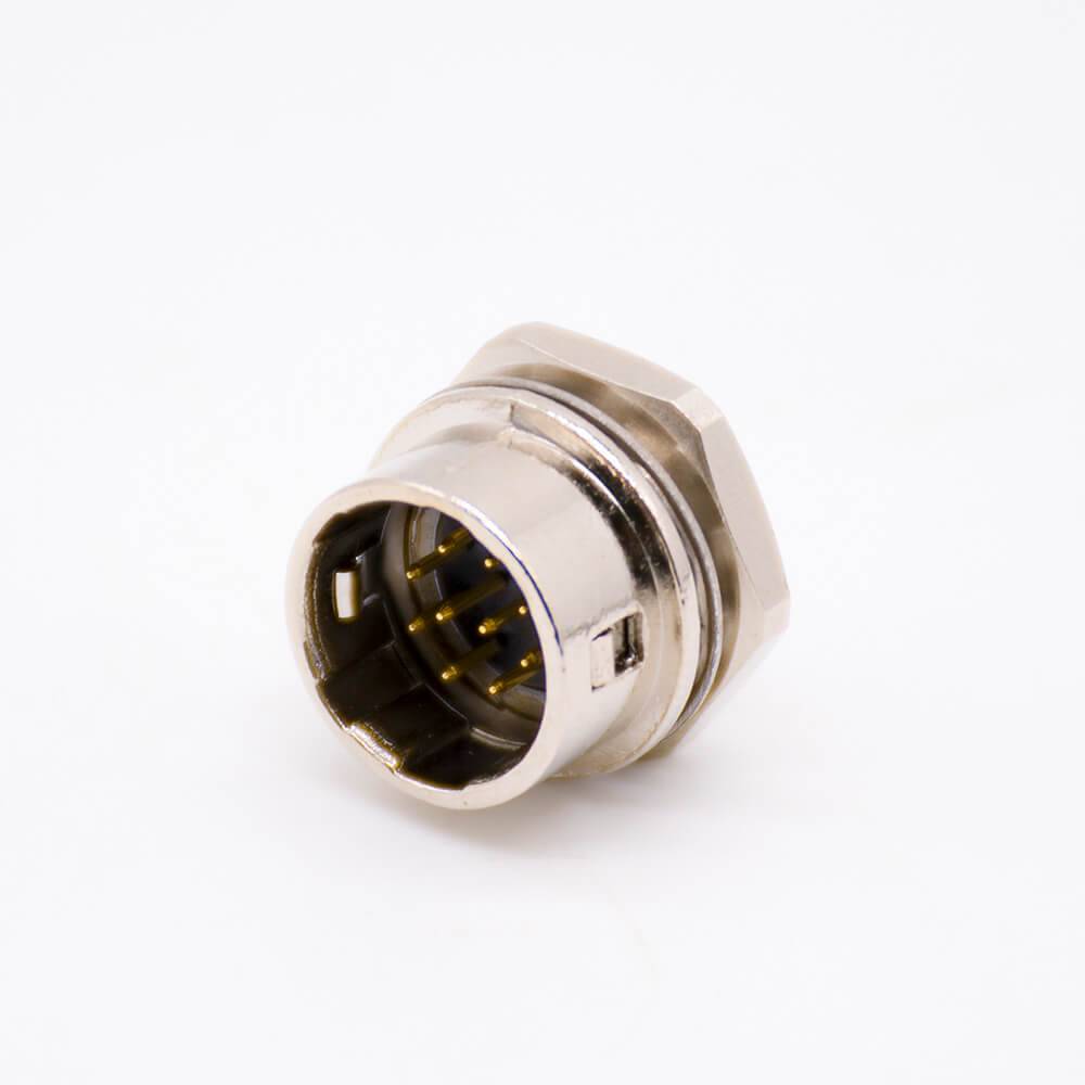 HR10系列圆形连接器10芯针型公插座焊线插座直式焊线后锁板