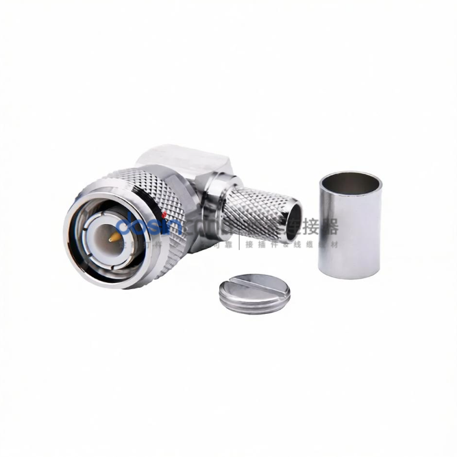 标签:TNC连接器、射频连接器、RF连接器、公头、弯式、50Ω、线缆安装
