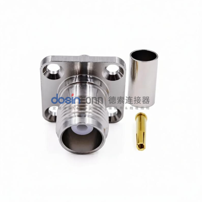 料号:TNC-C-KF-3 标签:TNC连接器、射频连接器、RF连接器、母头、直式、50Ω、四孔法兰